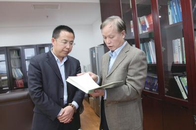 邱定蕃院士(右一)向本刊副社長(zhǎng)田曉東介紹調(diào)研情況