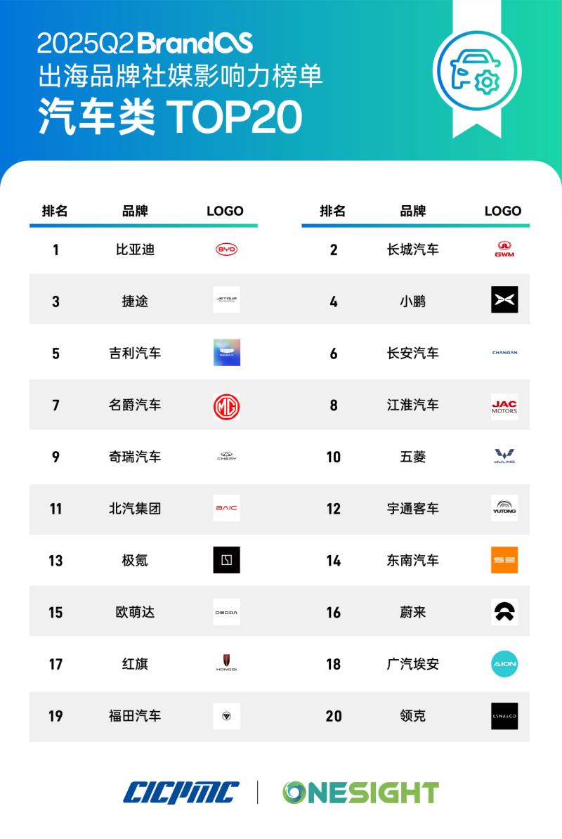近日,中國國際跨國公司促進會(簡稱“跨國會”)發(fā)布消息稱,2025年第二季度《BrandOS出海品牌社媒影響力榜單》(以下簡稱“BrandOS榜單”)正式發(fā)布。該榜單由跨國會與OneSight聯(lián)合推出,旨在通過數(shù)據(jù)化手段評估中國品牌在海外社交媒體平臺上的傳播表現(xiàn),為企業(yè)全球化發(fā)展提供參考依據(jù)。