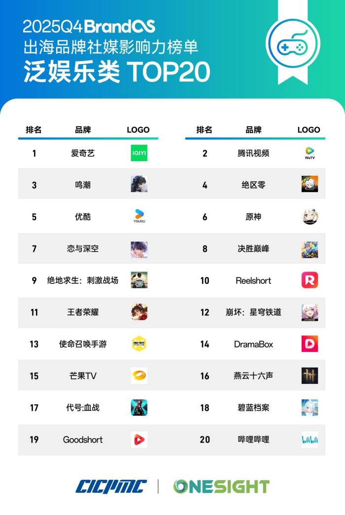 為貫徹落實(shí)黨中央、國務(wù)院關(guān)于推動(dòng)和服務(wù)中國企業(yè)出海的戰(zhàn)略決策,2026年1月20日,經(jīng)中國國際跨國公司促進(jìn)會(huì)監(jiān)制及其戰(zhàn)略合作伙伴中國品牌出海領(lǐng)導(dǎo)者OneSight聯(lián)合發(fā)布的2025Q4《BrandOS出海品牌社媒影響力榜單》正式揭曉。該榜單以“數(shù)據(jù)公開透明性+行業(yè)適配性”為核心原則,提供覆蓋消費(fèi)電子、汽車、家電家居、新能源、智能制造等8大核心領(lǐng)域的榜單,直觀反映品牌在全球化進(jìn)程中的階段性成果。